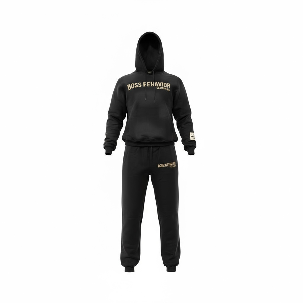 The Boss Behavior Embroidered Hoodie set is imported